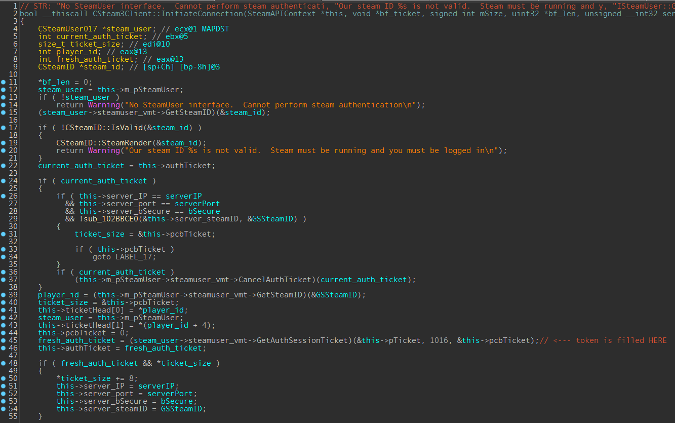 在开始之前,下面是一个能直观展示IDA强大功能的例子。这是两张图片但都是steamclient.dll中同一个函数反汇编后的结果,第一张图片是原始的反汇编代码,第二张是相同函数反汇编结果但是经过人工逆向解析。