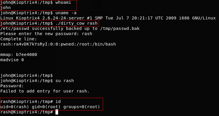 您可以在这里查看dirtycow漏洞利用的其他版本 – https://github.com/dirtycow/dirtycow.github.io/wiki/PoCs